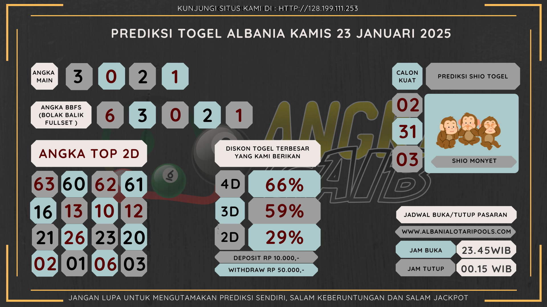 Bocoran Angka Albania Hari Kamis 23 Januari 2025