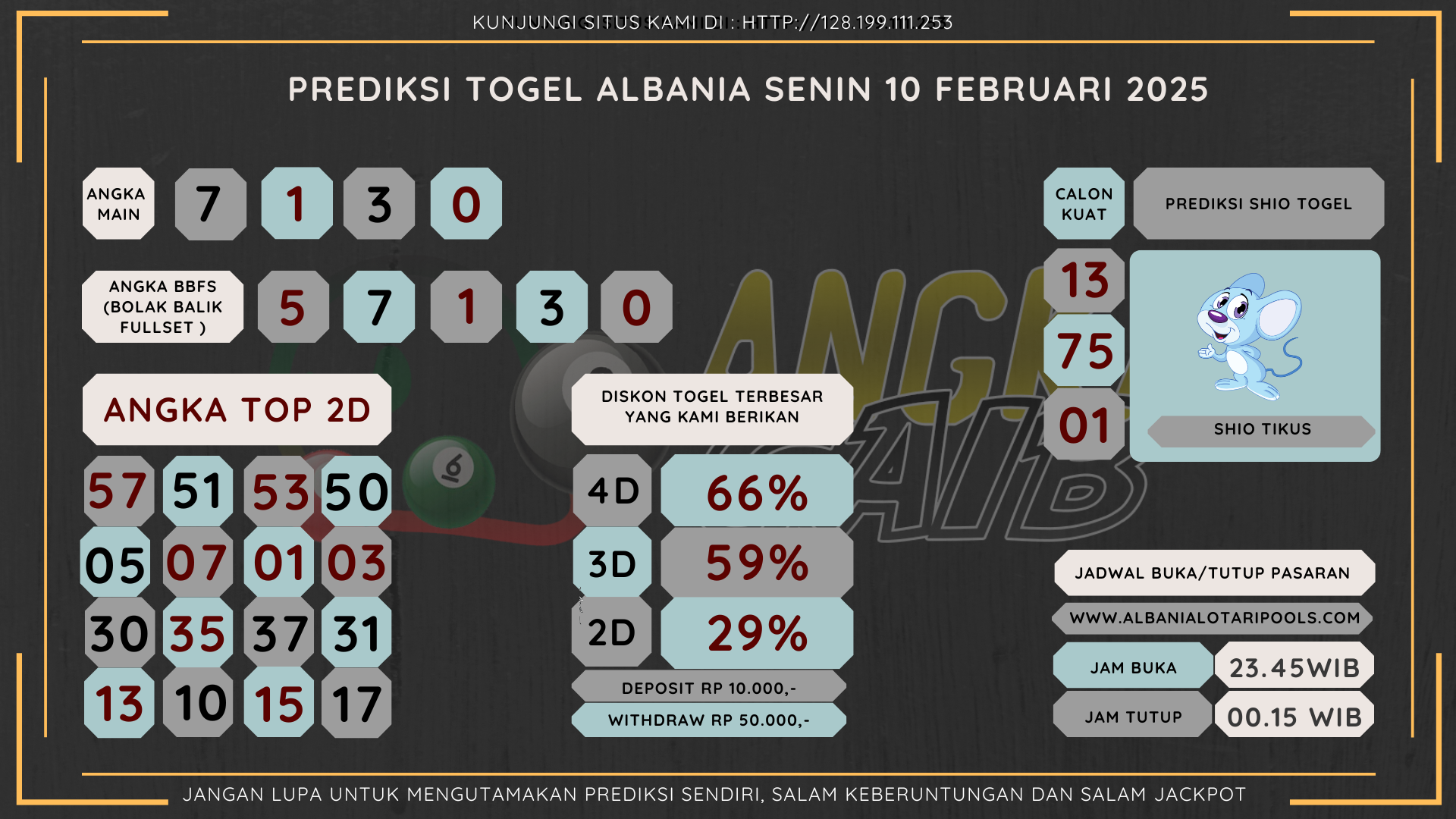 Bocoran Angka Albania Hari Senin 10 Februari 2025