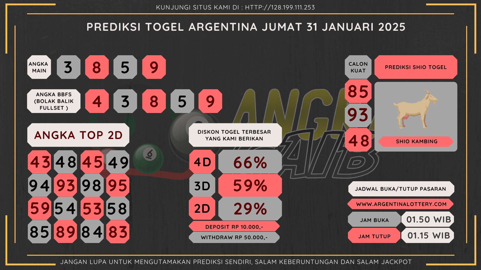Bocoran Angka Argentina Hari Jumat 31 Januari 2025