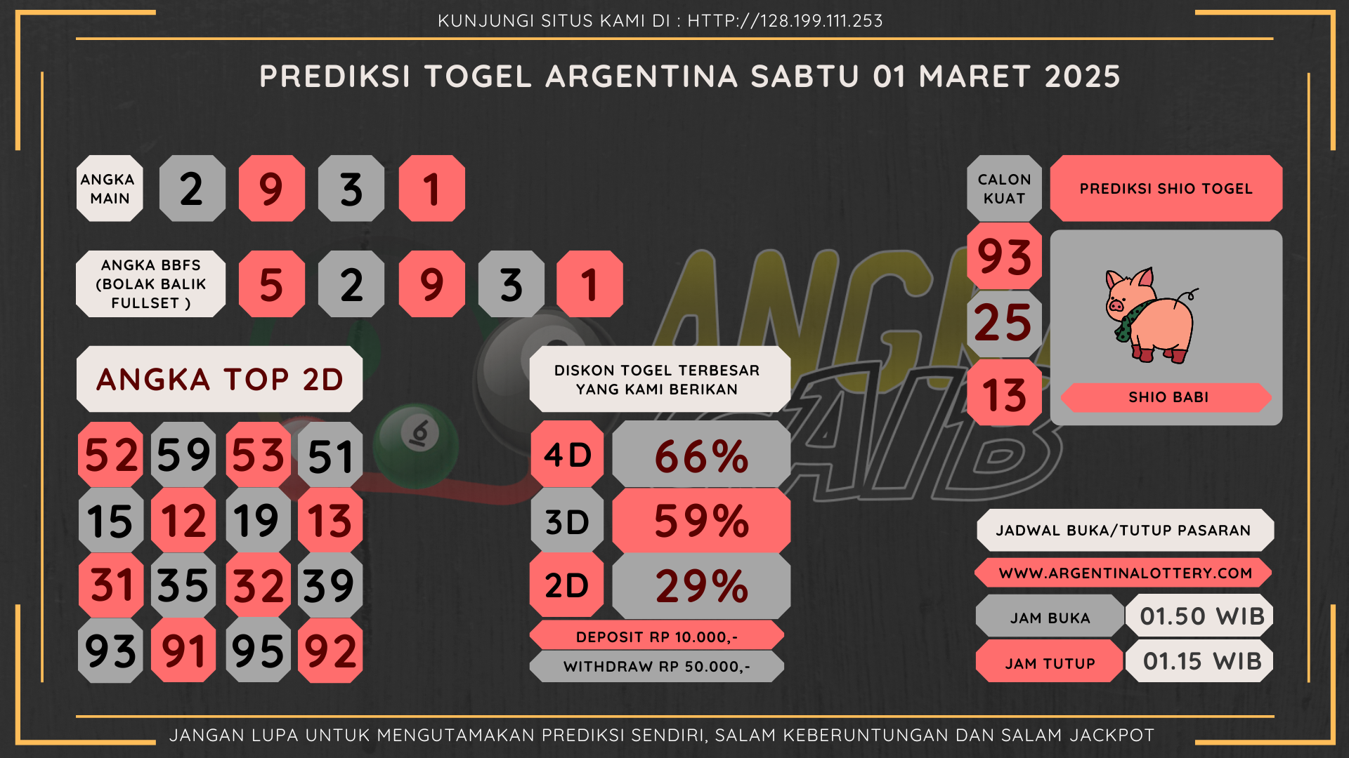 Bocoran Angka Argentina Hari Sabtu 01 Maret 2025