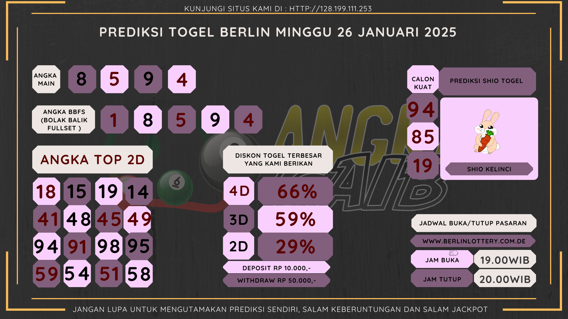 Bocoran Angka Berlin Hari Minggu 26 Januari 2025