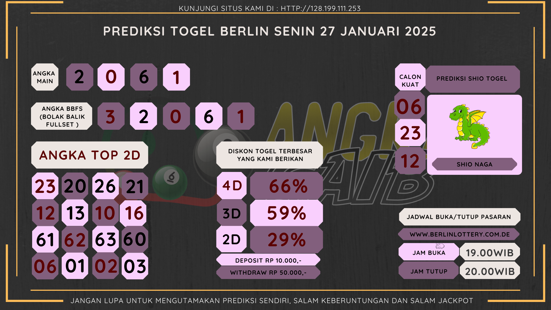 Bocoran Angka Berlin Hari Senin 27 Januari 2025