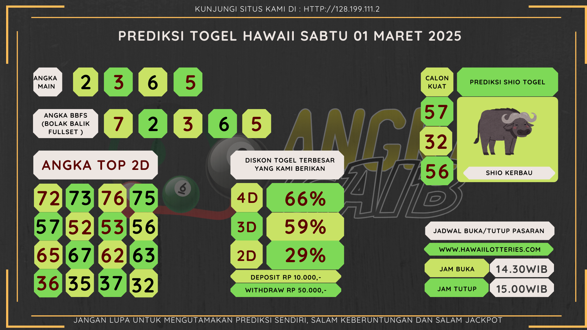 Bocoran Angka Hawaii Hari Sabtu 01 Maret 2025