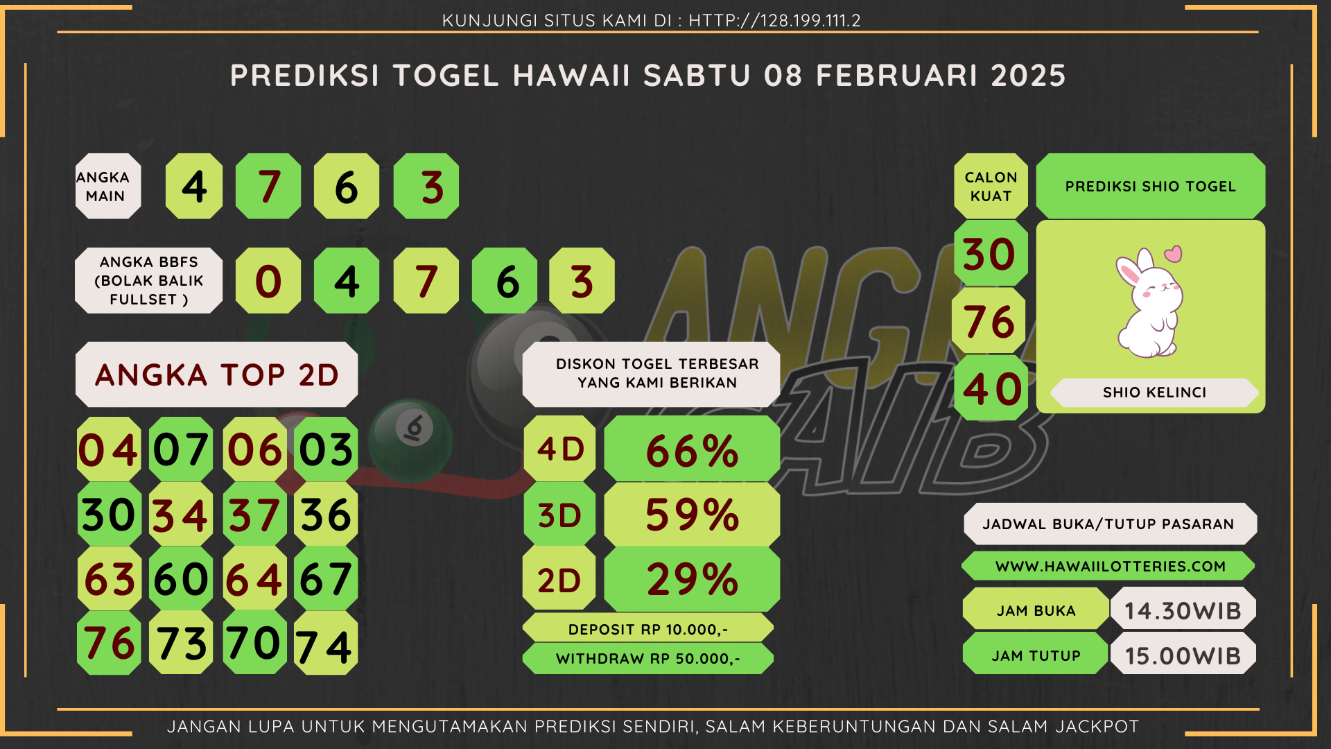 Bocoran Angka Hawaii Hari Sabtu 08 Februari 2025