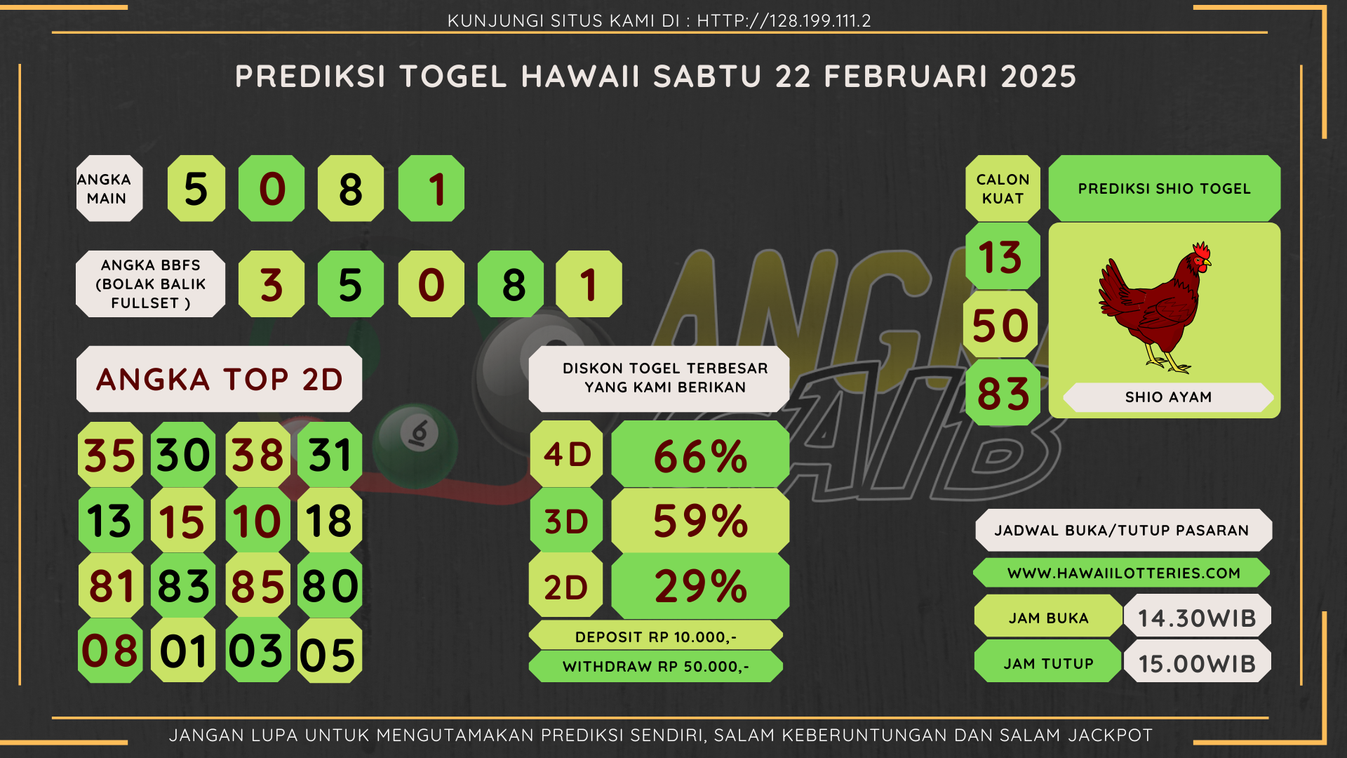 Bocoran Angka Hawaii Hari Sabtu 22 Februari 2025