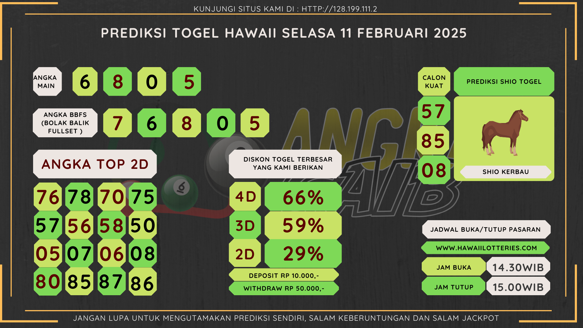 Bocoran Angka Hawaii Hari Selasa 11 Februari 2025