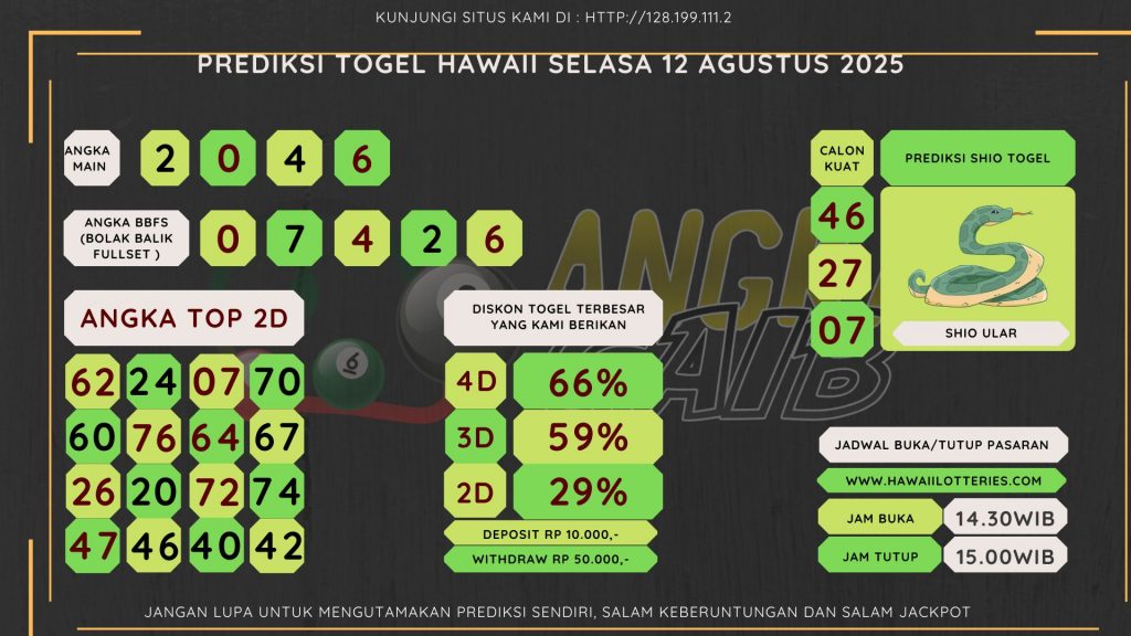 Bocoran Angka Hawaii Hari Selasa 12 AGUSTUS 2025