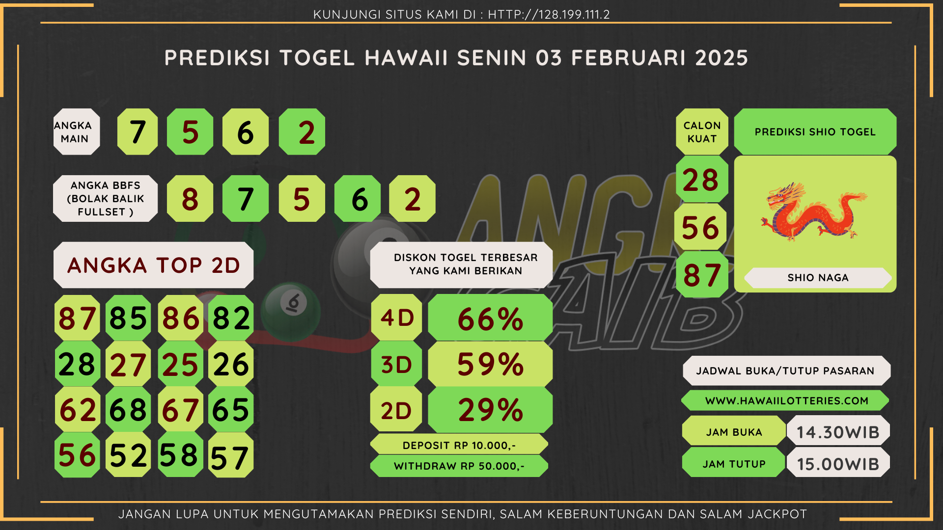 Bocoran Angka Hawaii Hari Senin 03 Februari 2025