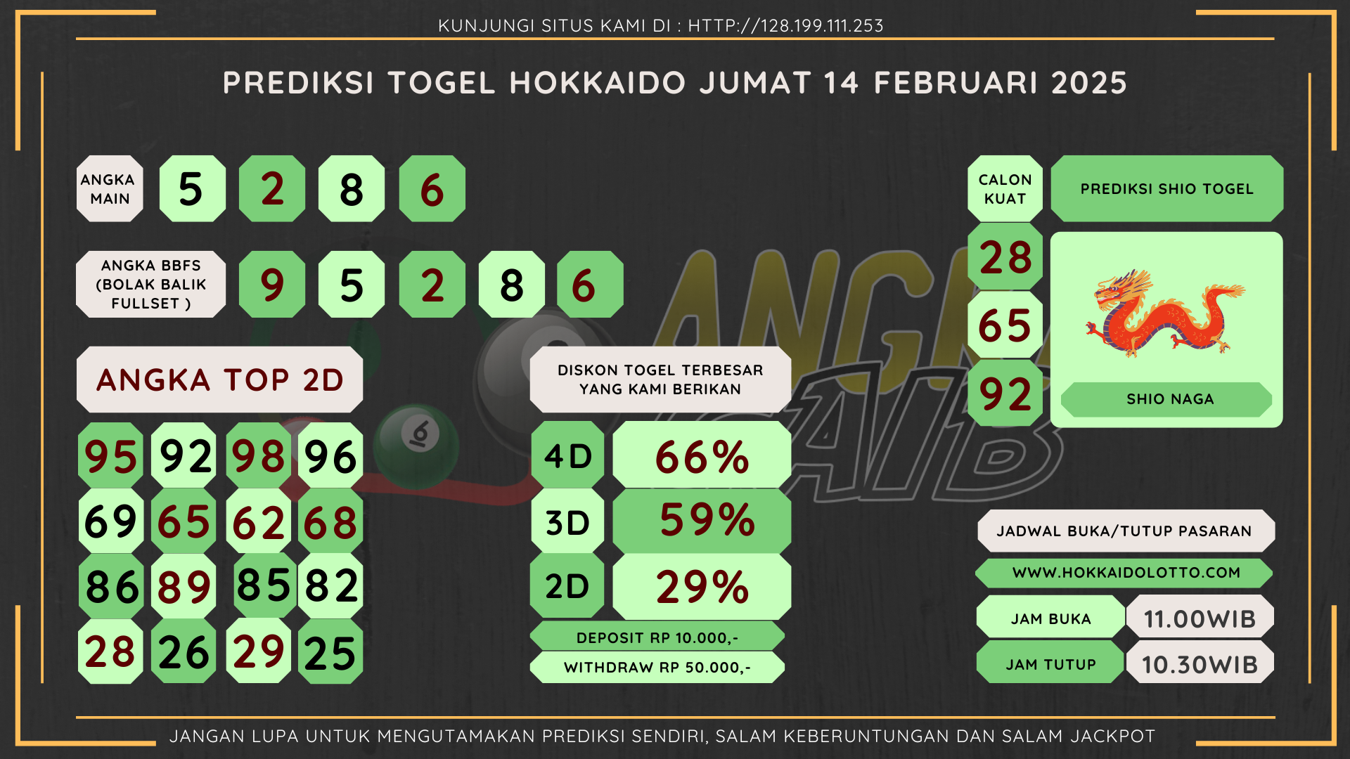 Bocoran Angka Hokkaido Hari Jumat 14 Februari 2025