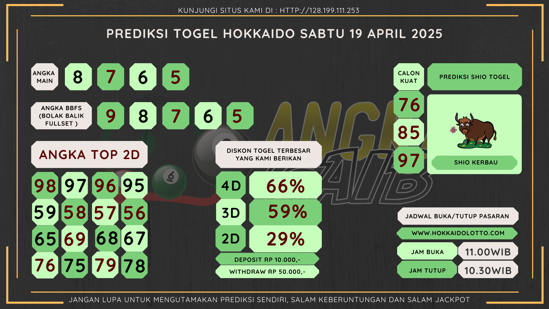 Bocoran Angka Hokkaido Hari Sabtu 19 April 2025