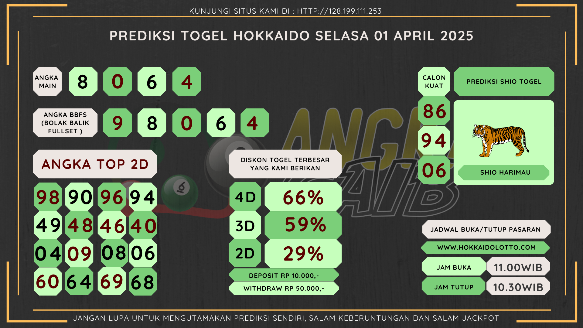 Bocoran Angka Hokkaido Hari Selasa 01 April 2025
