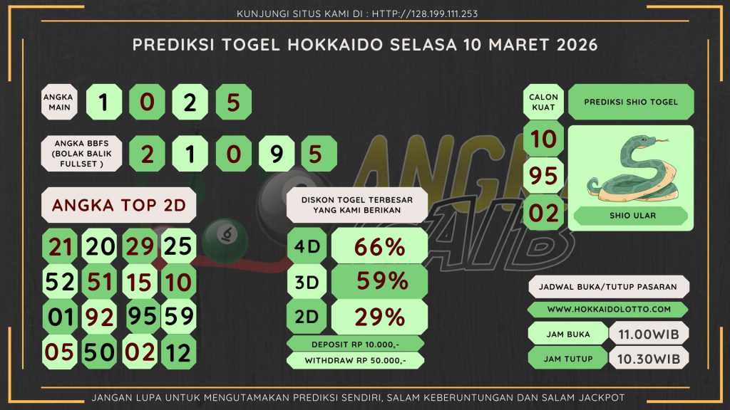 Bocoran Angka Hokkaido Hari Selasa 10 Maret 2026