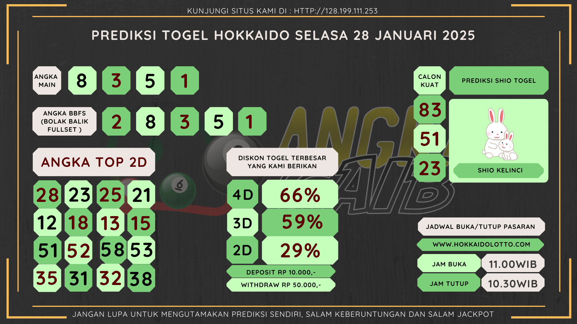 Bocoran Angka Hokkaido Hari Selasa 28 Januari 2025