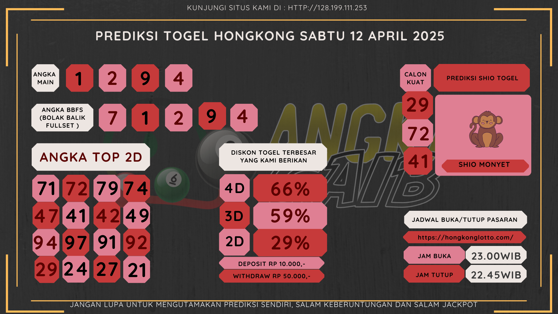 Bocoran Angka Hongkong Hari Sabtu 12 April 2025