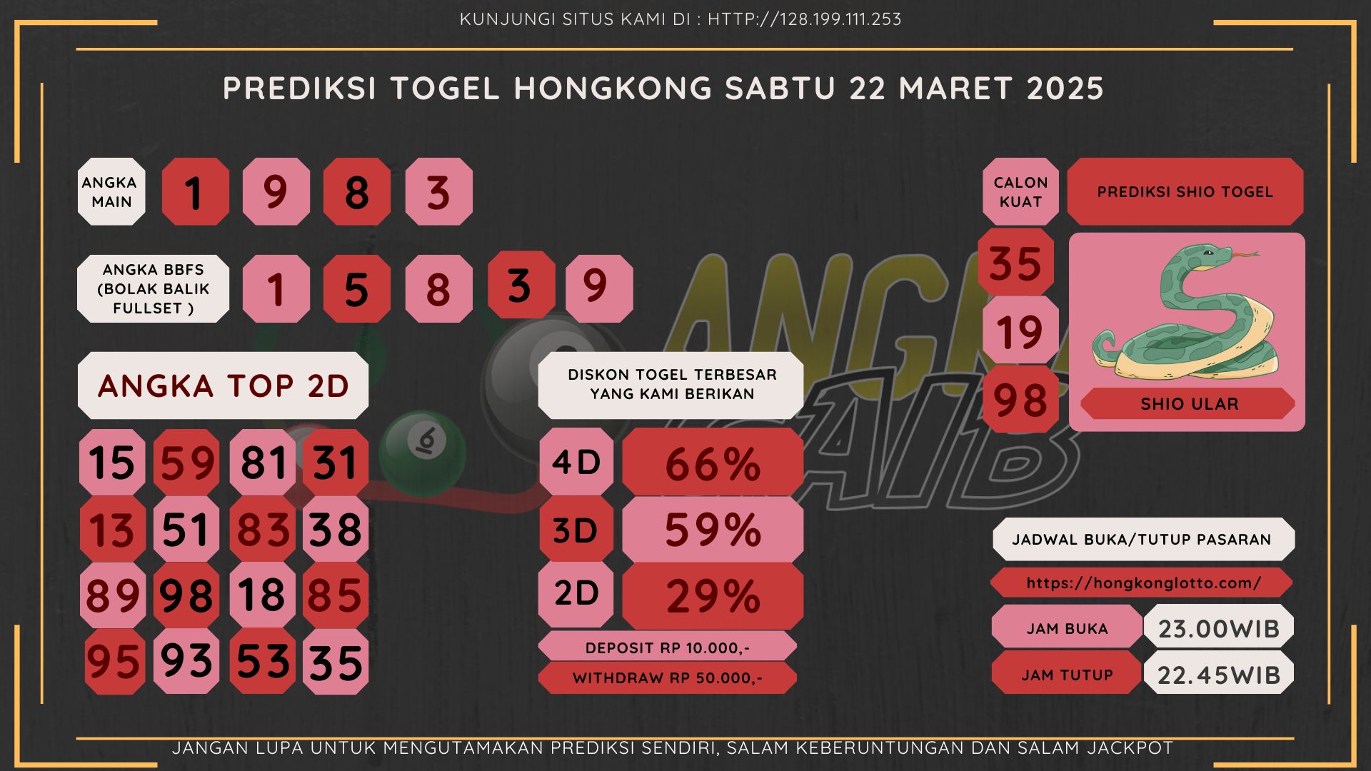 Bocoran Angka Hongkong Hari Sabtu 22 Maret 2025