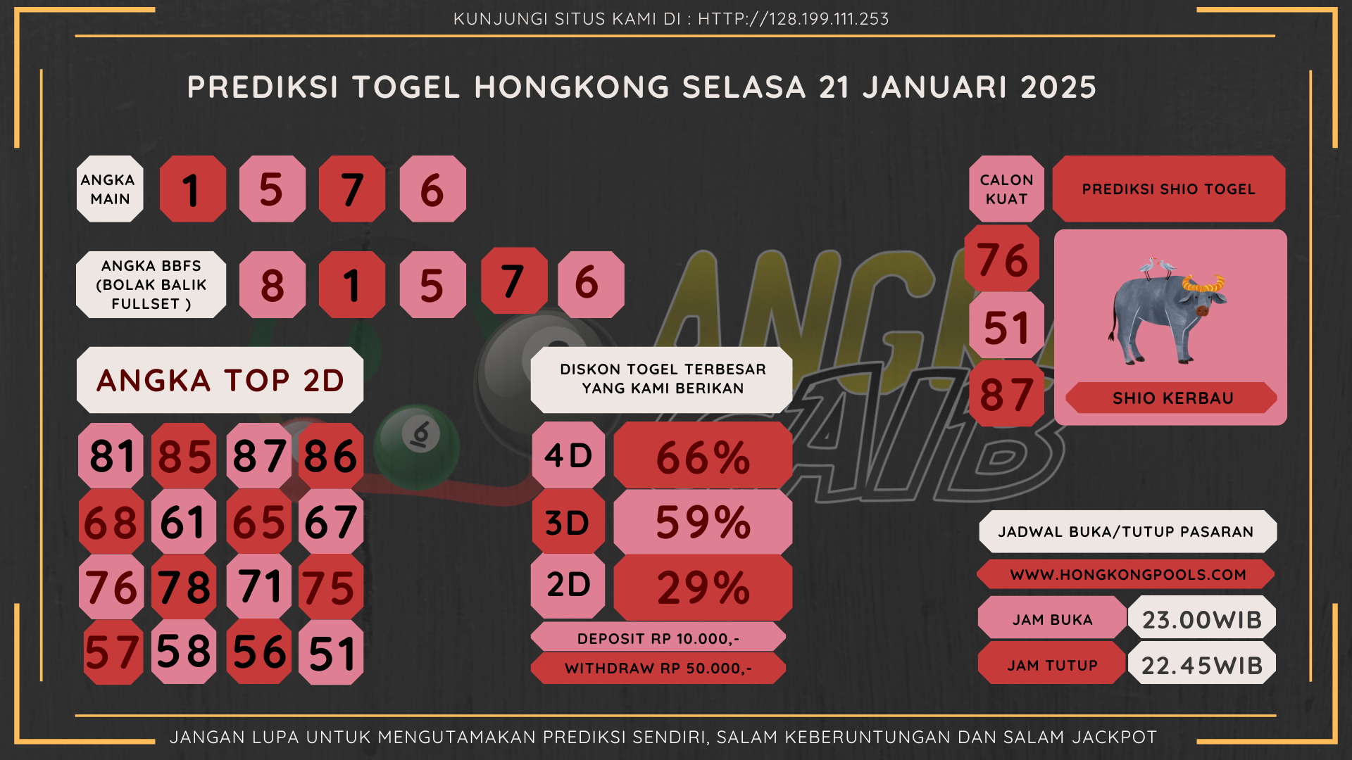 Bocoran Angka Hongkong Hari Selasa 21 Januari 2025