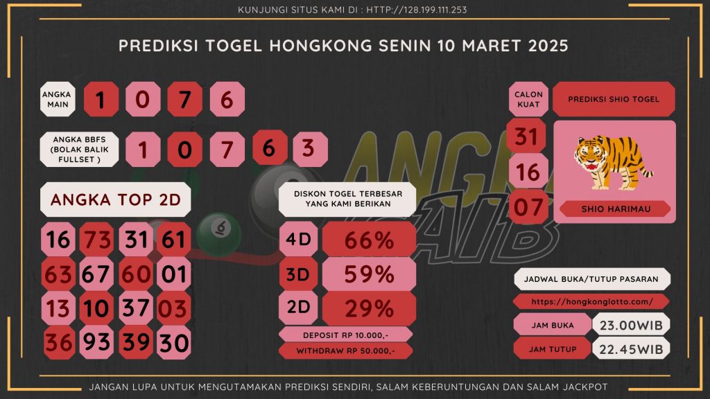 Bocoran Angka Hongkong Hari Senin 10 Maret 2025