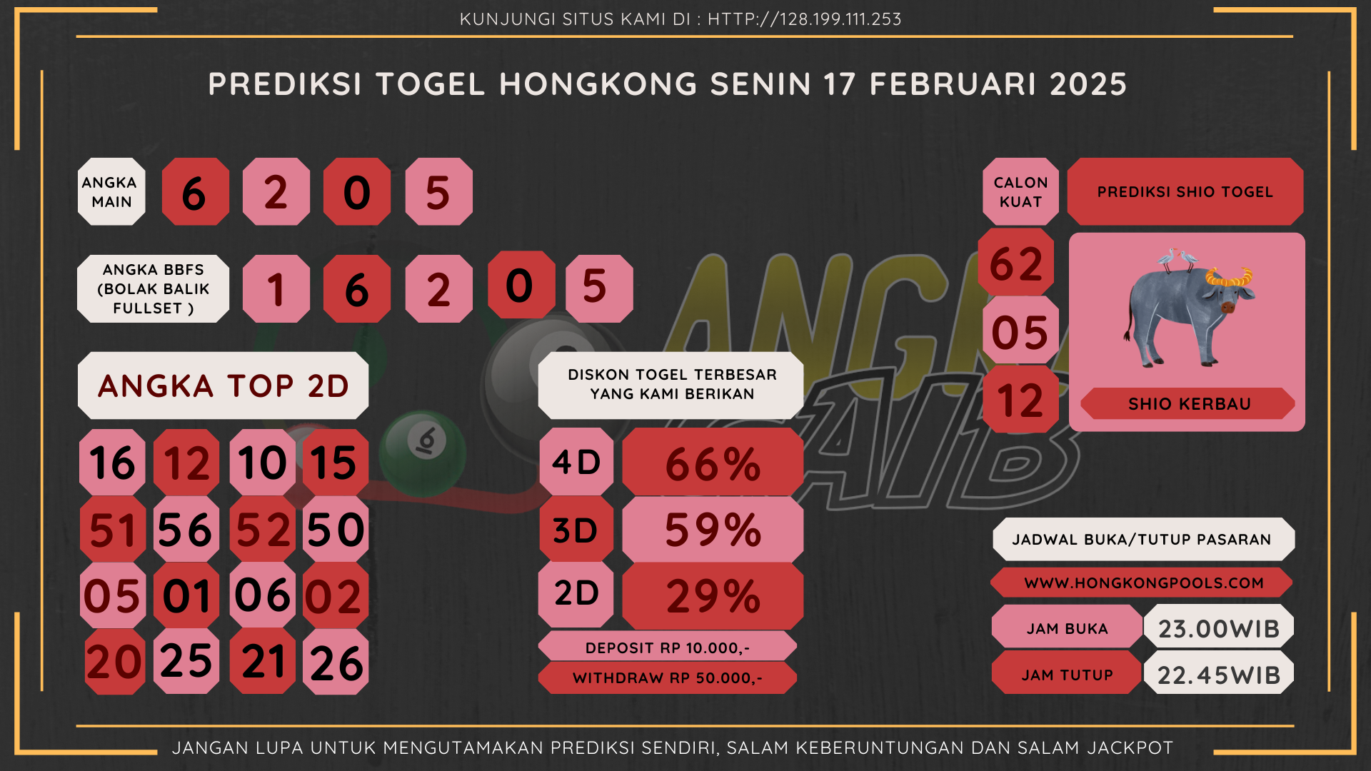 Bocoran Angka Hongkong Hari Senin 17 Februari 2025