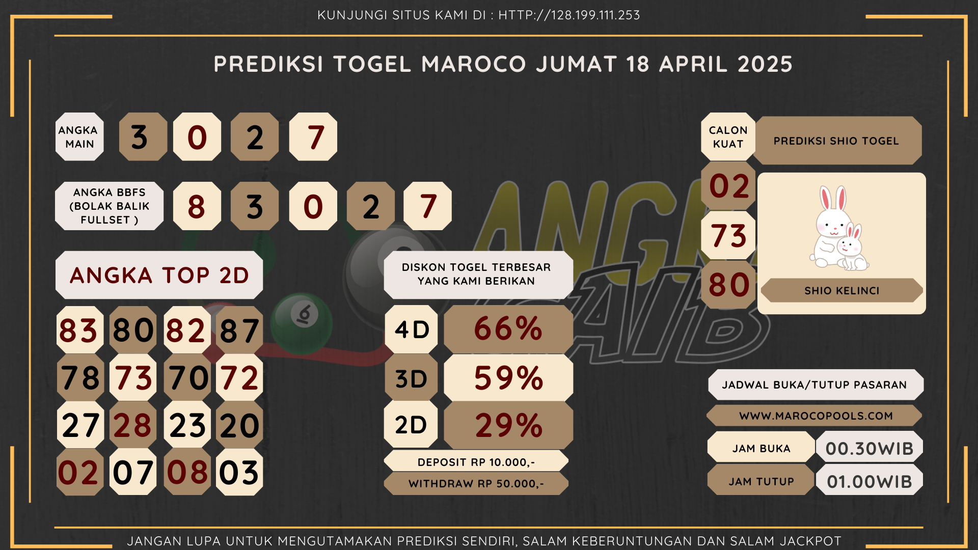 Bocoran Angka Maroco Hari Jumat 18 April 2025