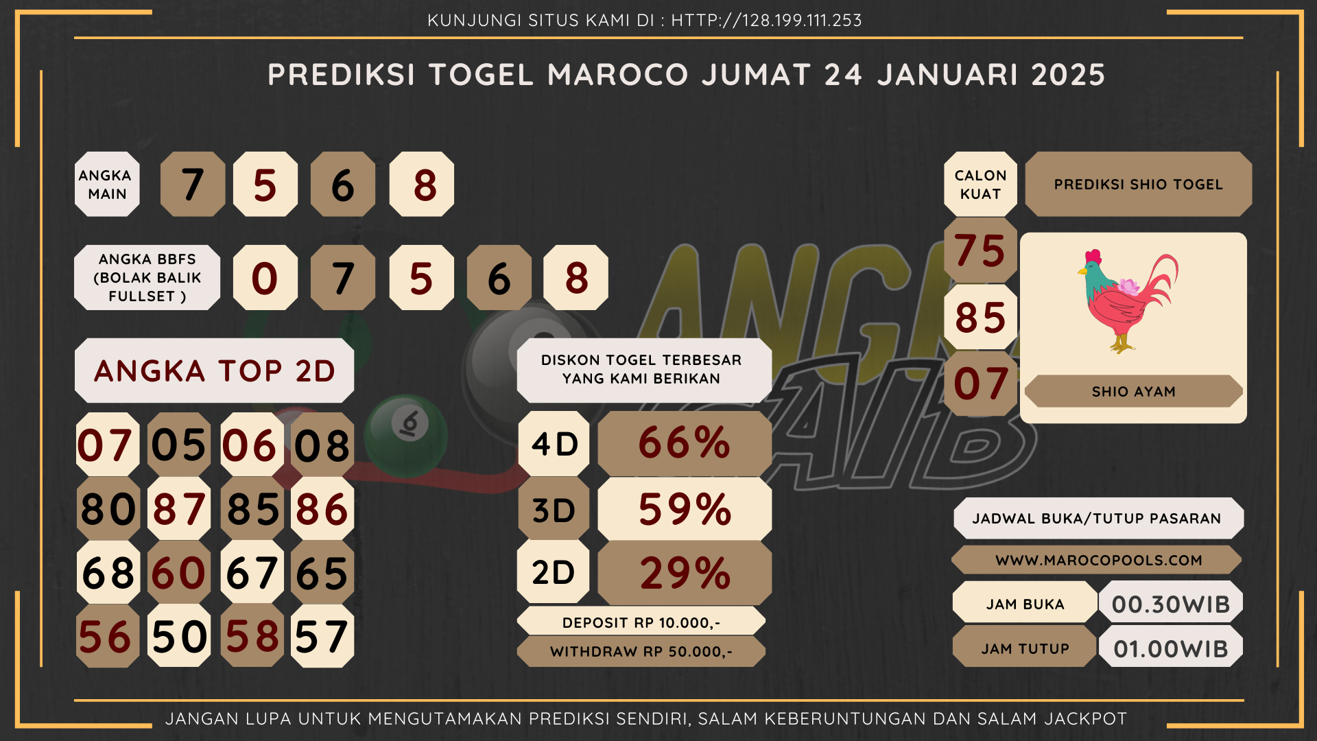Bocoran Angka Maroco Hari Jumat 24 Januari 2025