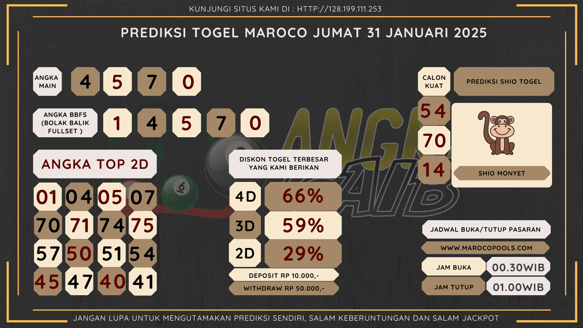 Bocoran Angka Maroco Hari Jumat 31 Januari 2025