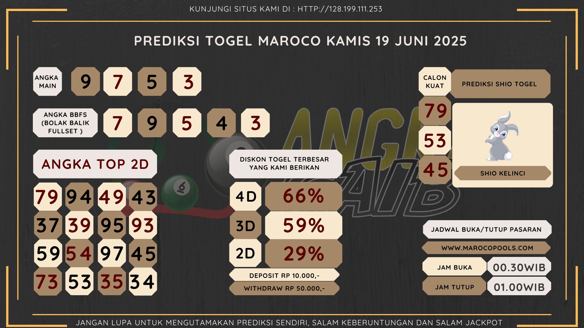Bocoran Angka Maroco Hari Kamis 19 Juni 2025