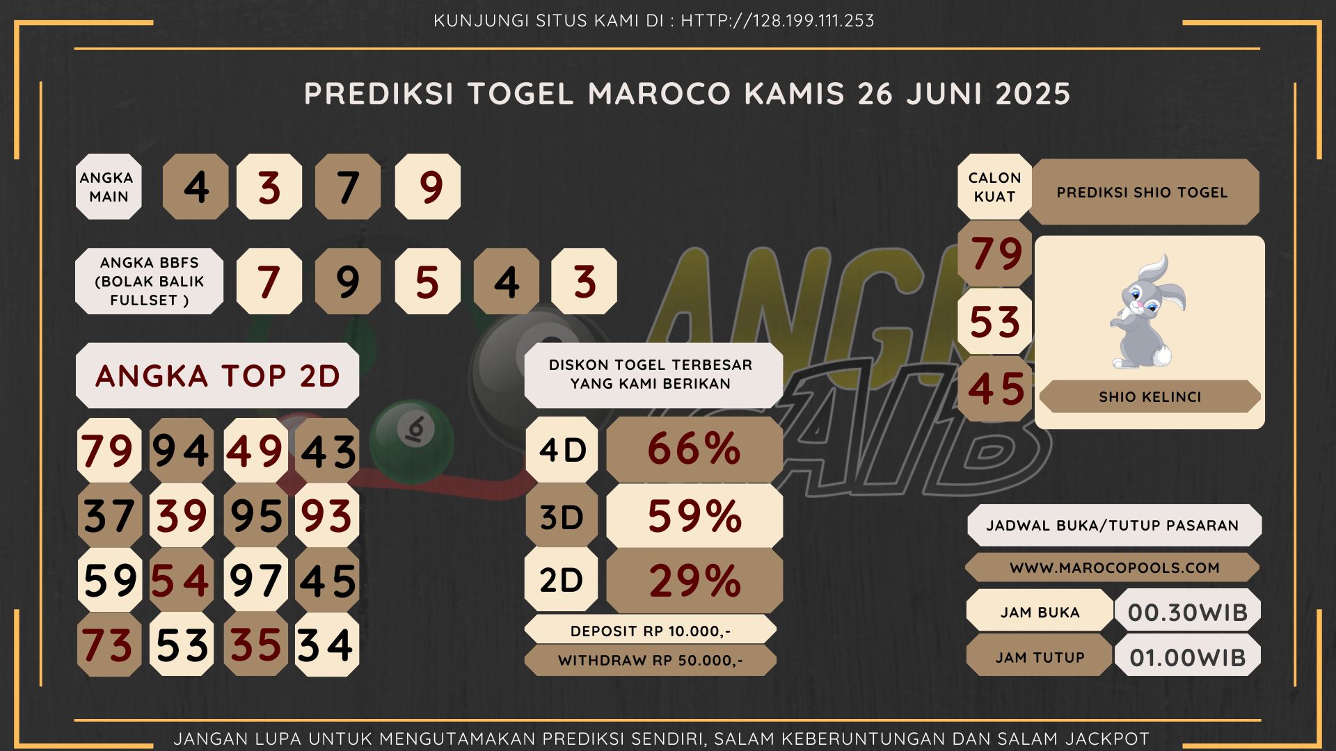Bocoran Angka Maroco Hari Kamis 26 Juni 2025