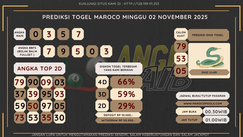 Bocoran Angka Maroco Hari Minggu 02 November 2025