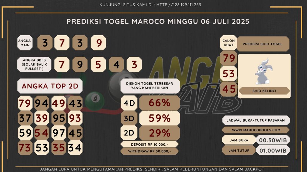 Bocoran Angka Maroco Hari Minggu 06 Juli 2025