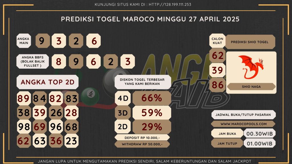 Bocoran Angka Maroco Hari Minggu 27 April 2025