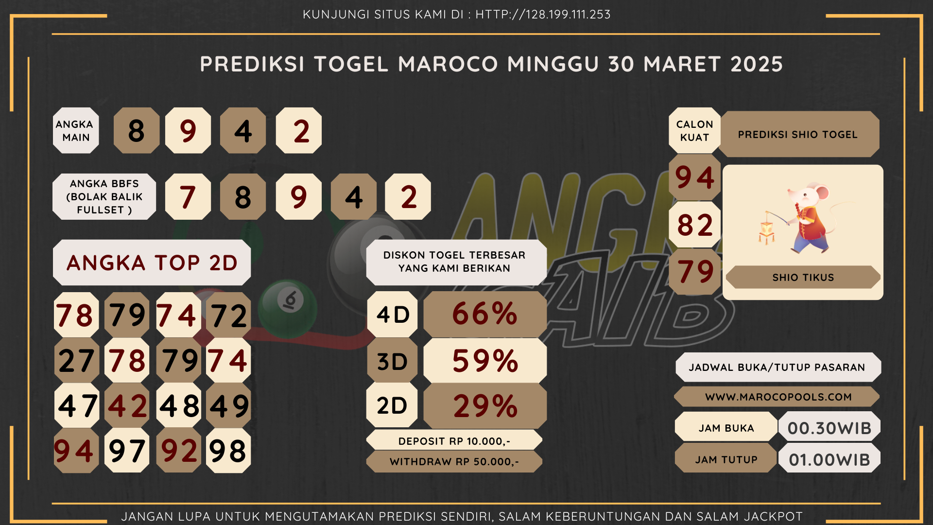 Bocoran Angka Maroco Hari Minggu 30 Maret 2025