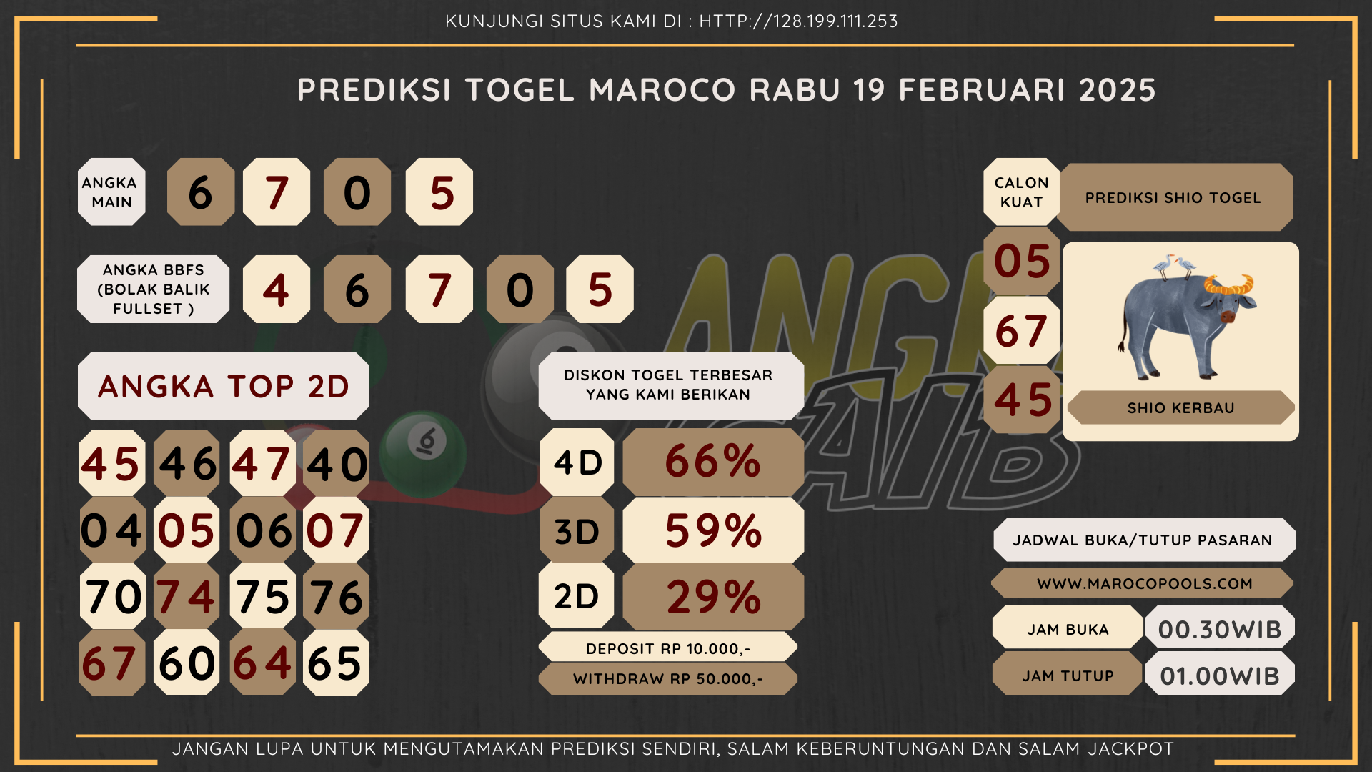 Bocoran Angka Maroco Hari Rabu 19 Februari 2025