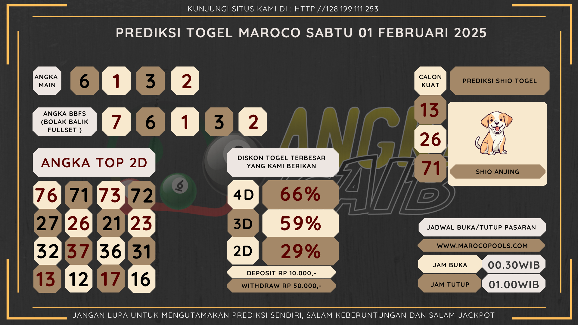 Bocoran Angka Maroco Hari Sabtu 01 Februari 2025