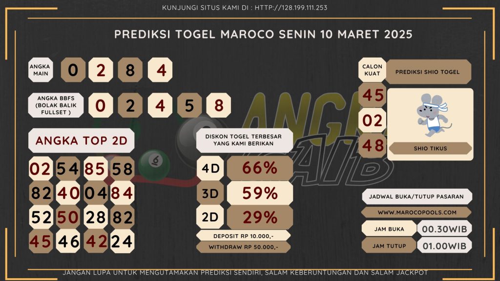 Bocoran Angka Maroco Hari Senin 10 Maret 2025