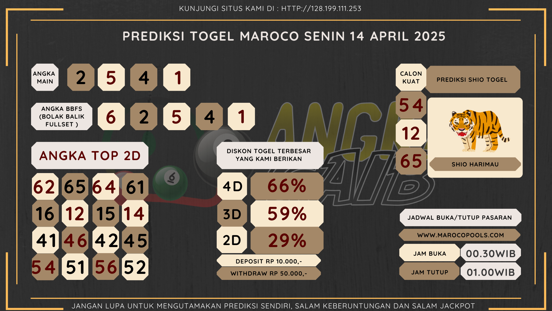 Bocoran Angka Maroco Hari Senin 14 April 2025