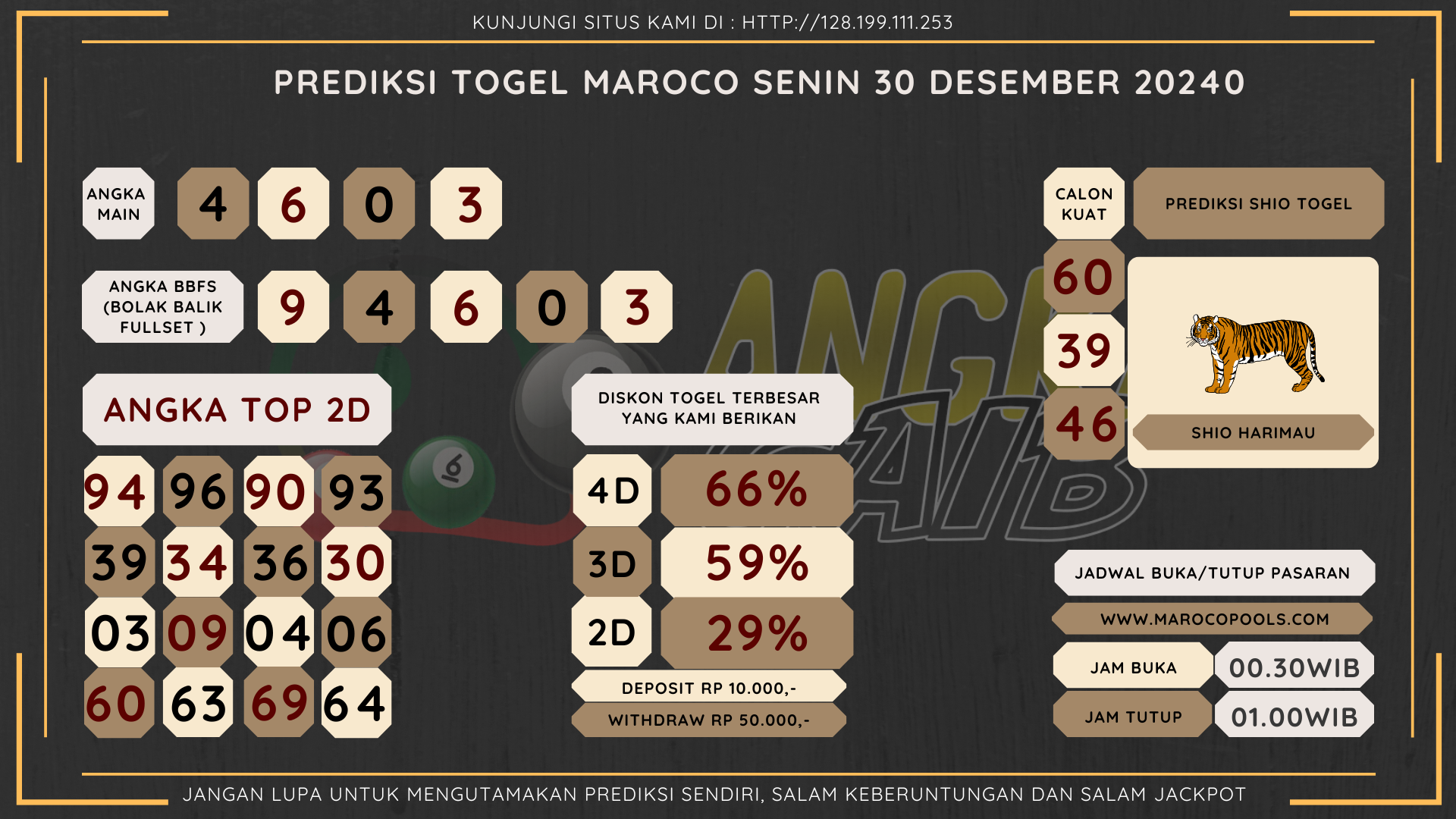 Bocoran Angka Maroco Hari Senin 30 Desember 2024