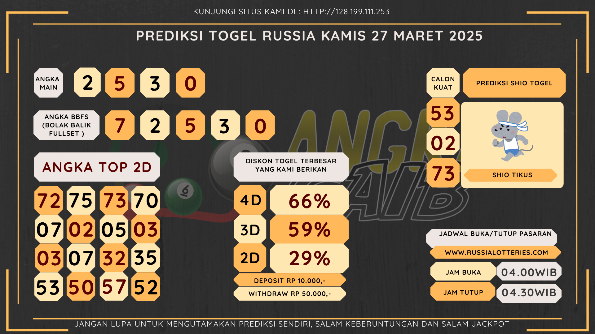 Bocoran Angka Russia Hari Kamis 27 Maret 2025