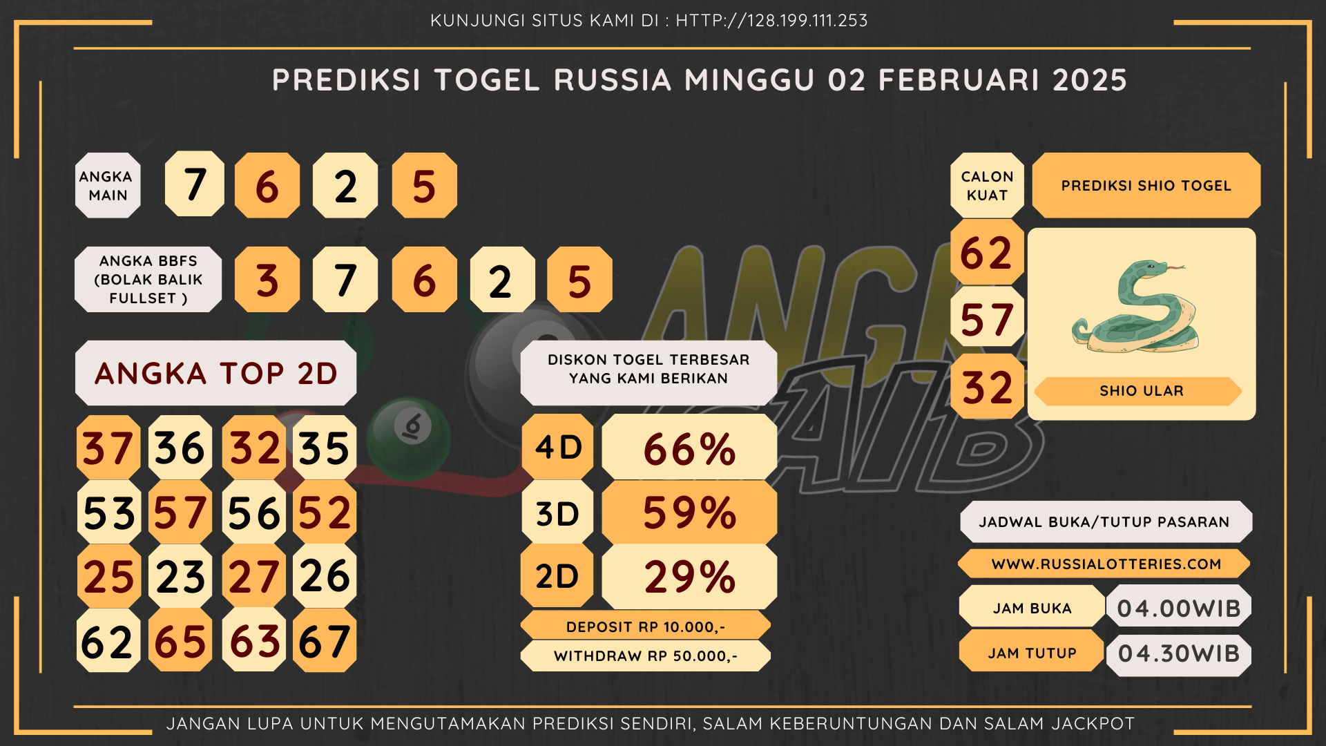 Bocoran Angka Russia Hari Minggu 02 Februari 2025