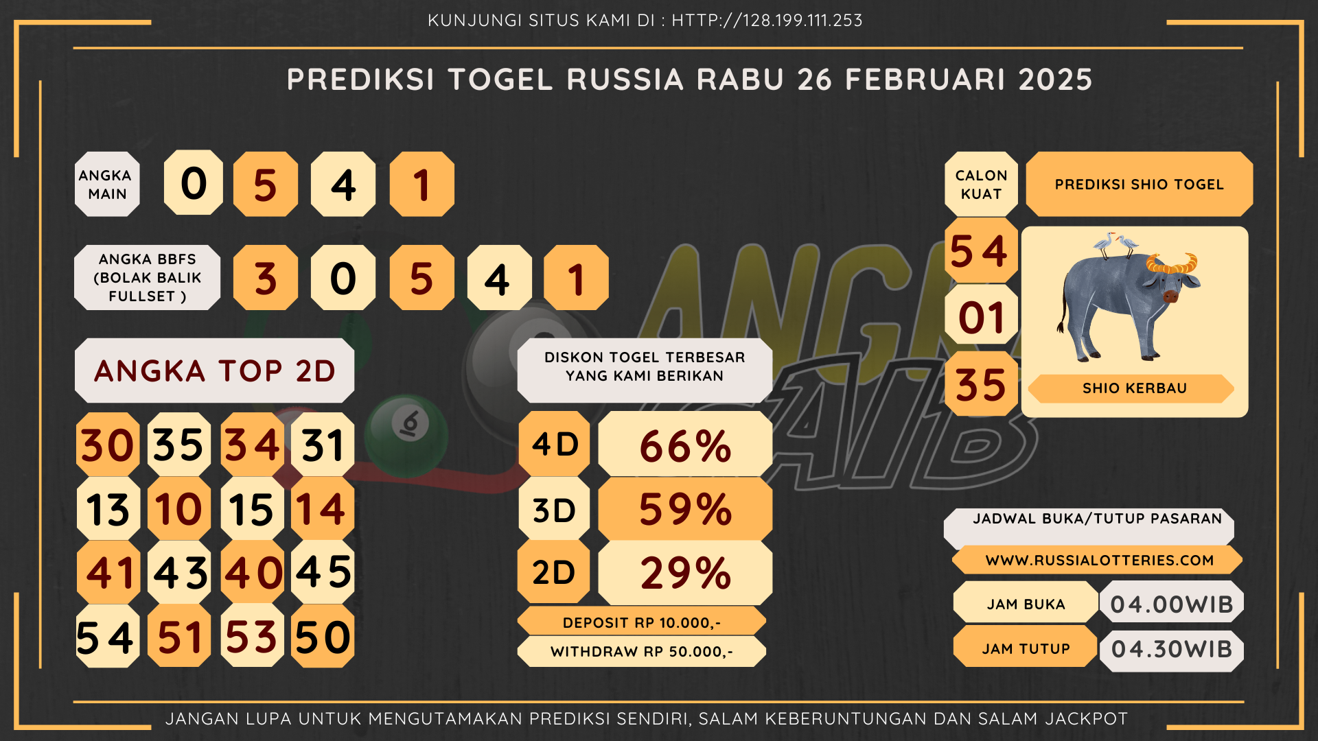 Bocoran Angka Russia Hari Rabu 26 Februari 2025
