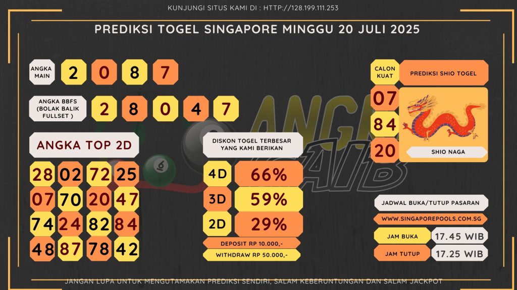 Bocoran Angka Singapore Hari Minggu 20 Juli 2025