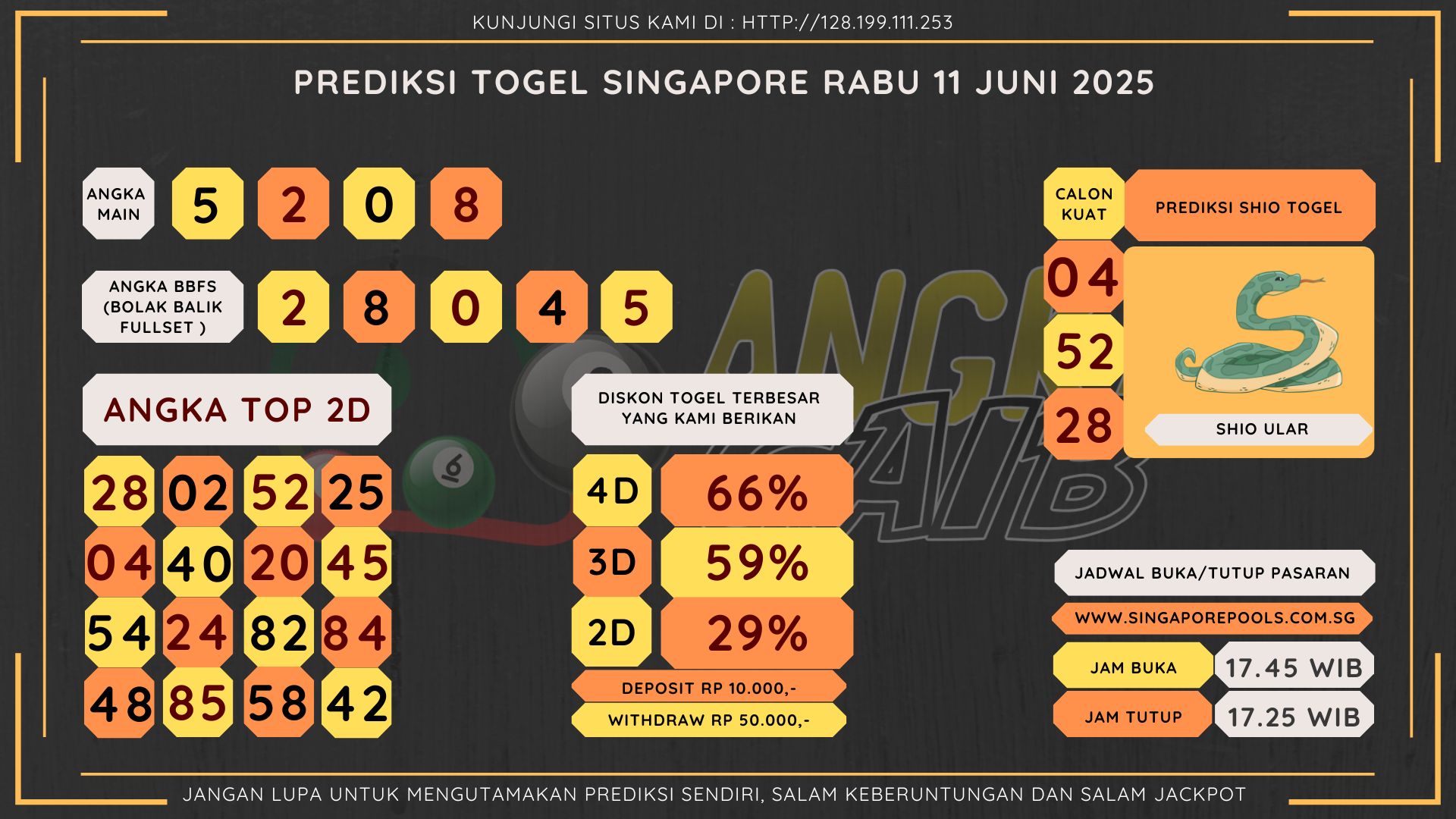 Bocoran Angka Singapore Hari Rabu 11 Juni 2025