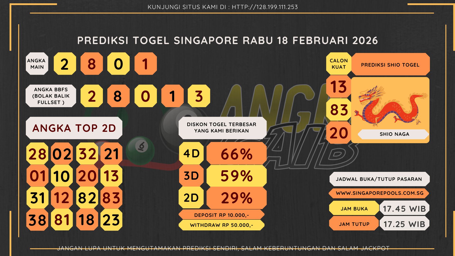 Bocoran Angka Singapore Hari Rabu 18 FEBRUARI 2026