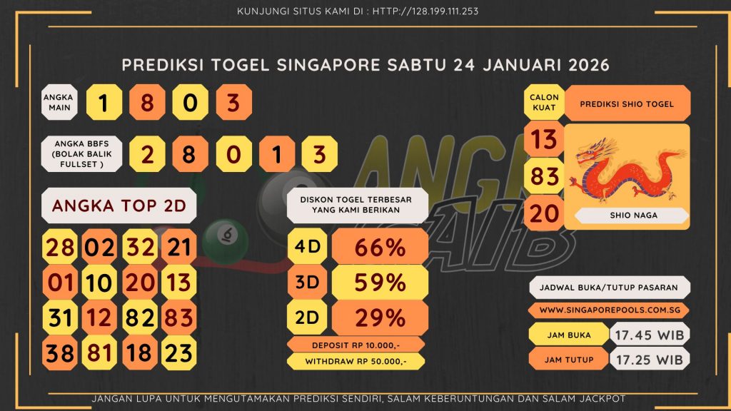 Bocoran Angka Singapore Hari Sabtu 24 JANUARI 2026