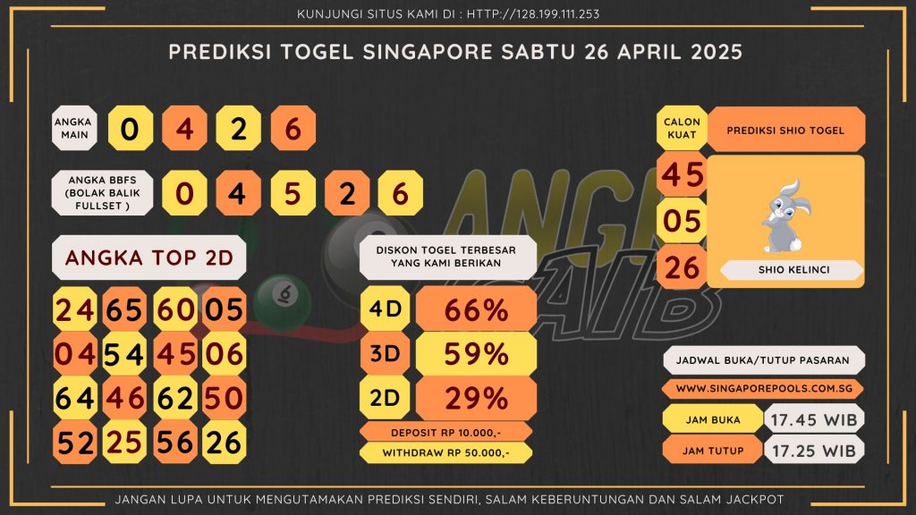 Bocoran Angka Singapore Hari Sabtu 26 April 2025