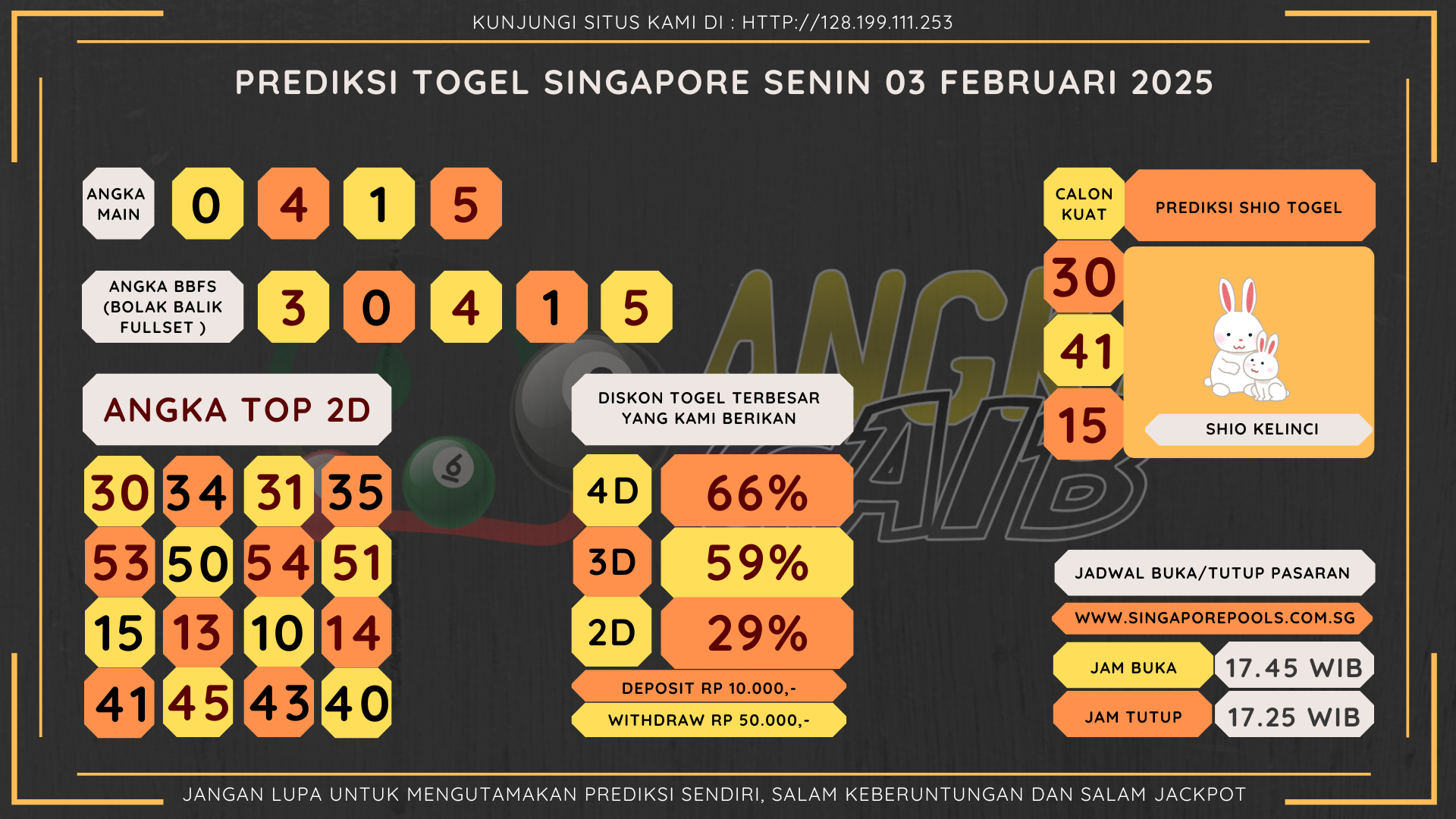 Bocoran Angka Singapore Hari Senin 03 Februari 2025