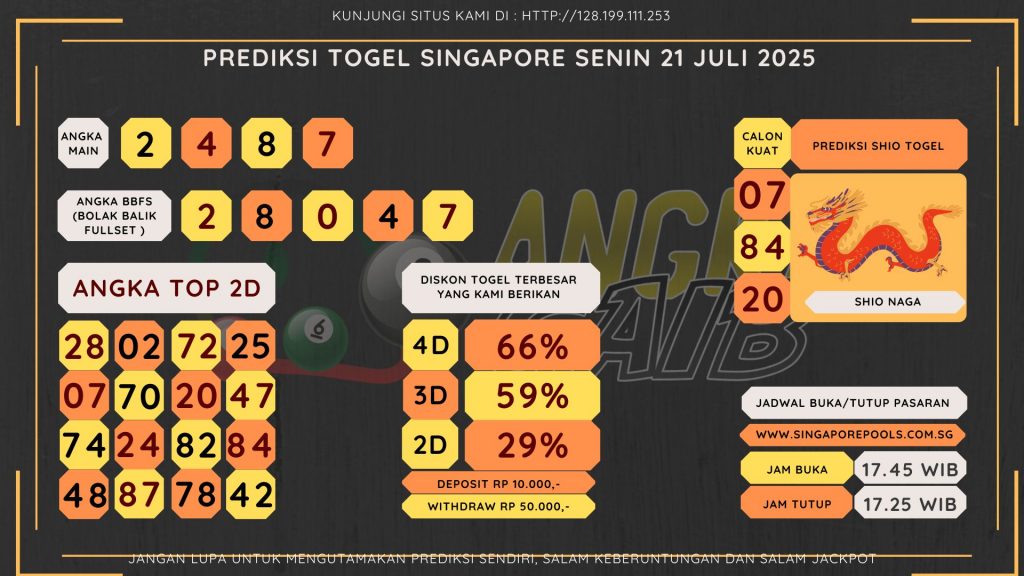 Bocoran Angka Singapore Hari Senin 21 Juli 2025