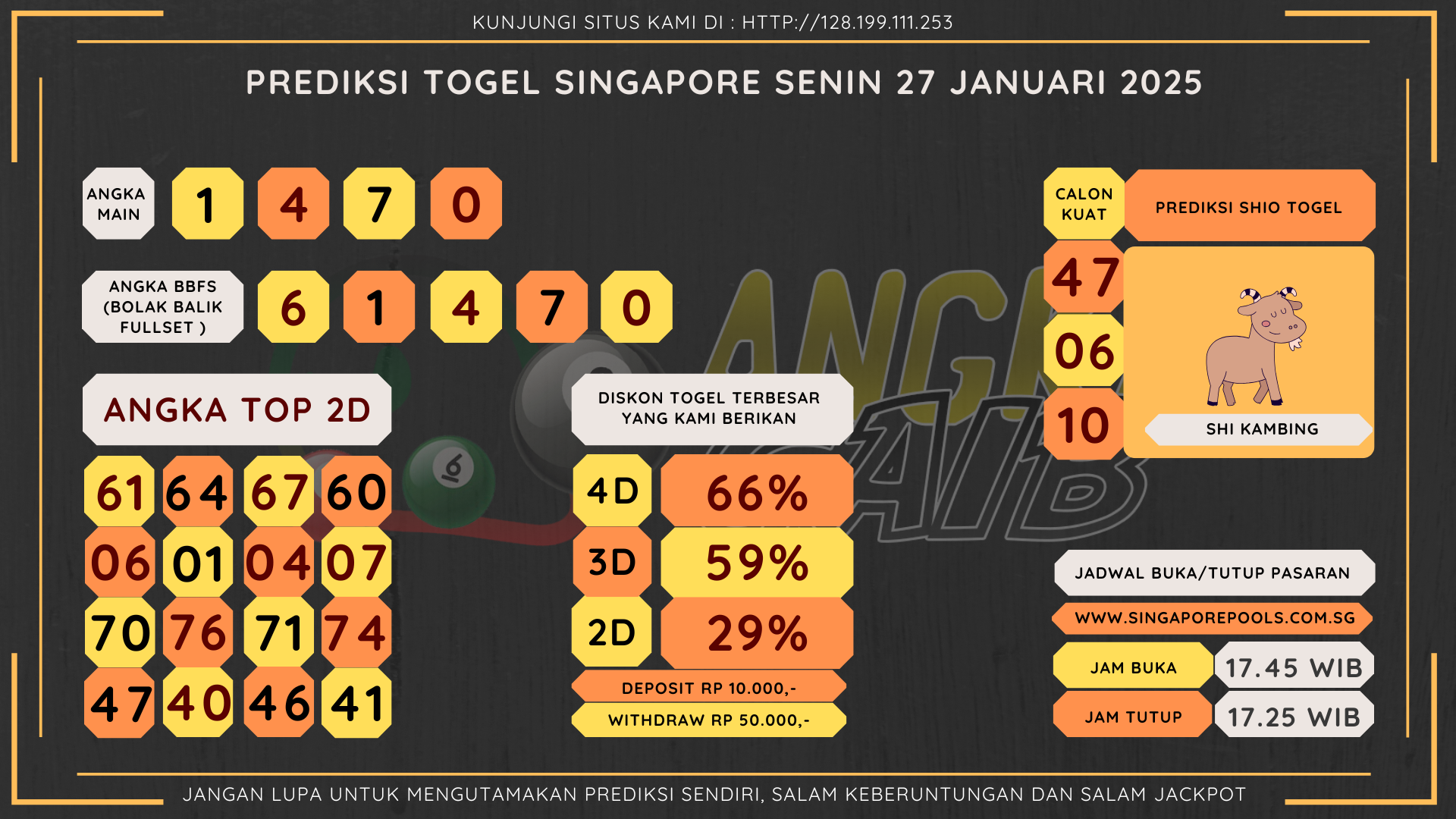 Bocoran Angka Singapore Hari Senin 27 Januari 2025