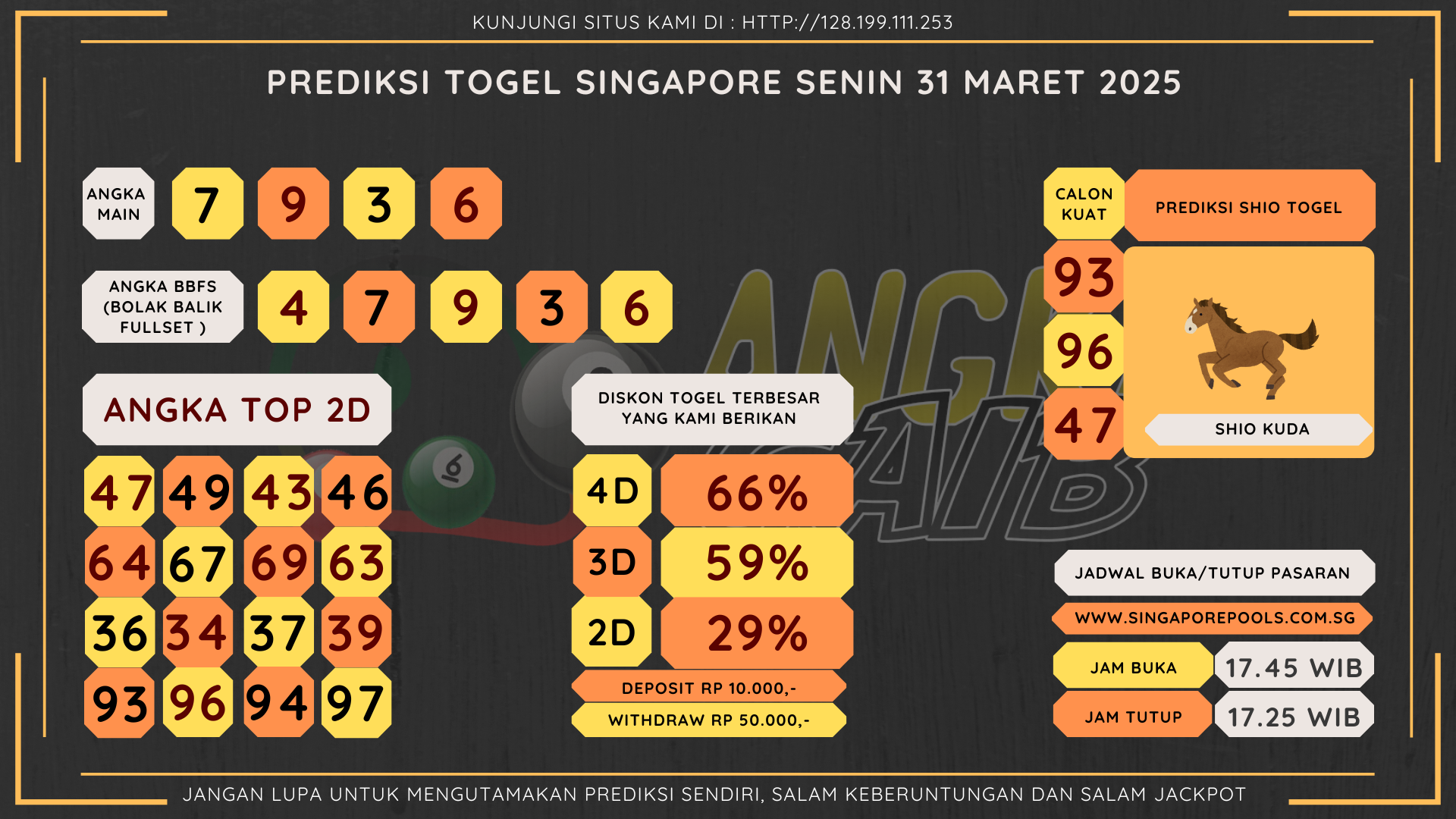 Bocoran Angka Singapore Hari Senin 31 Maret 2025