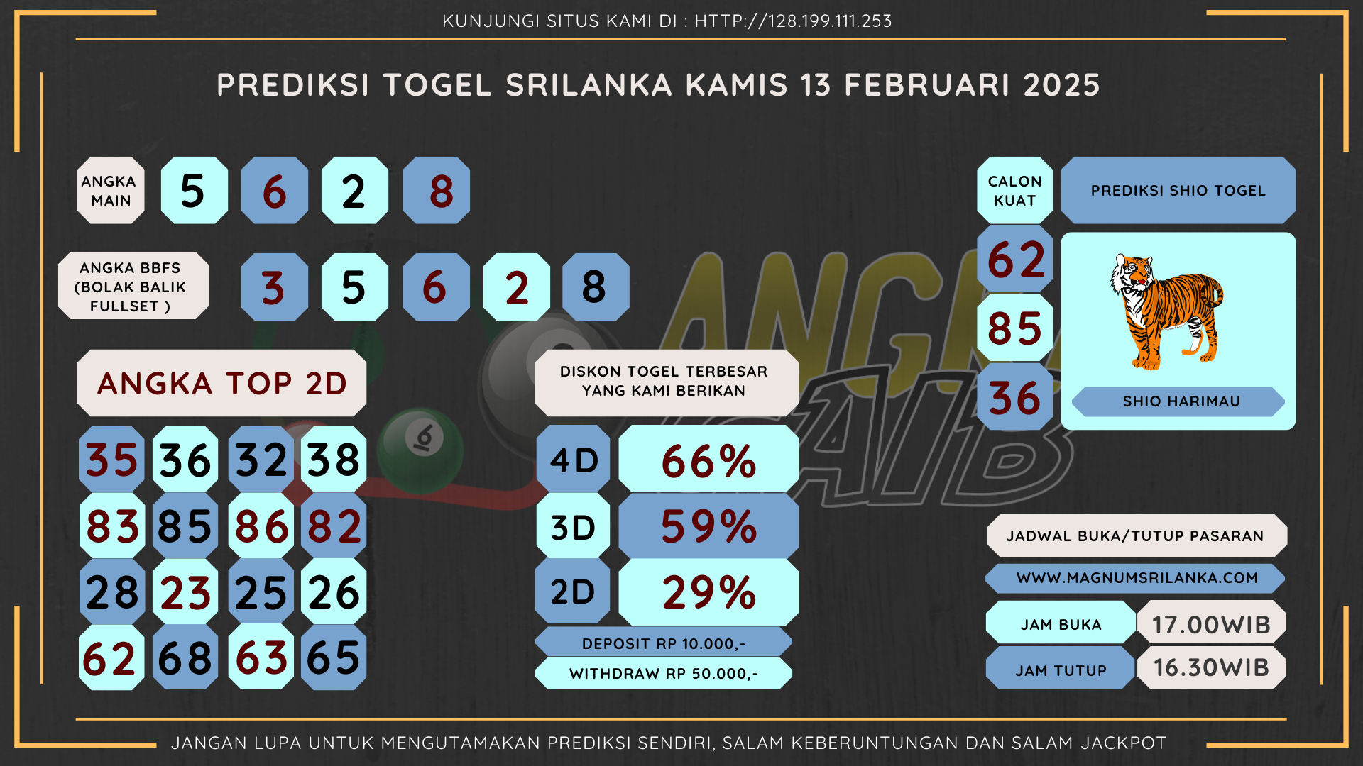 Bocoran Angka Srilanka Hari Kamis 13 Februari 2025