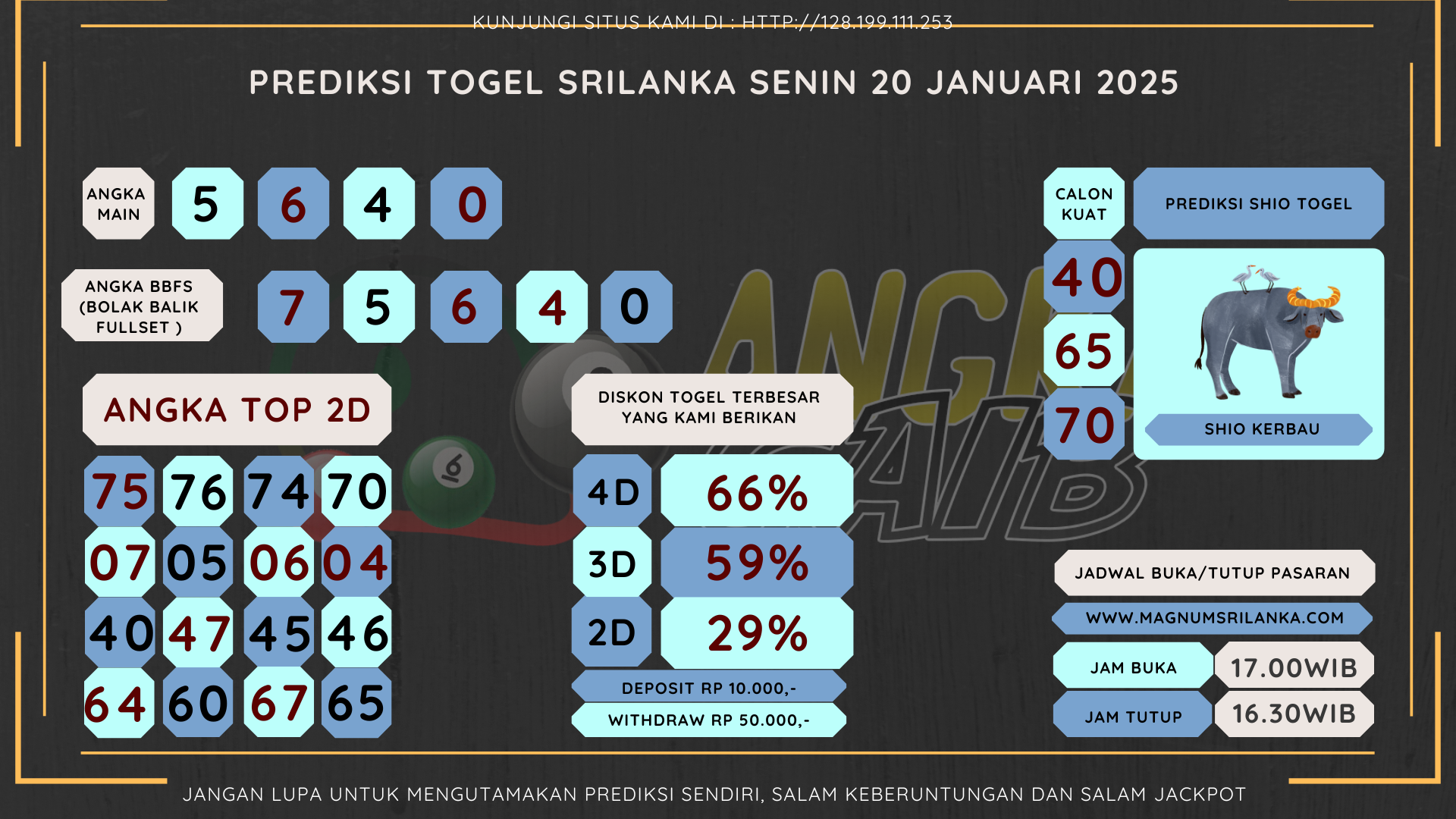 Bocoran Angka Srilanka Hari Senin 20 Januari 2025
